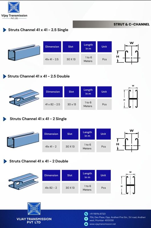 Strut & C-Channels – Structural framing members for supporting trays and electrical fittings.