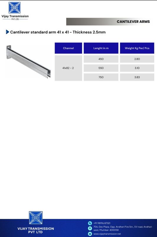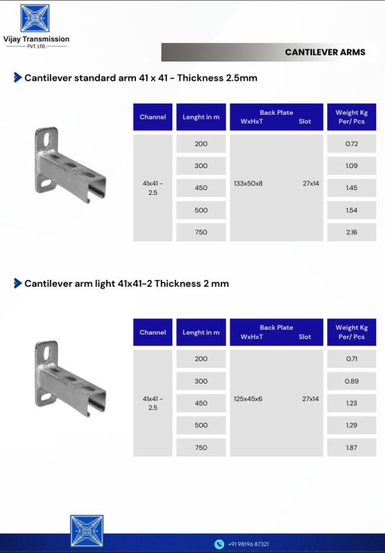 Cantilever Arms – Support brackets for wall-mounted or space-saving tray installations.